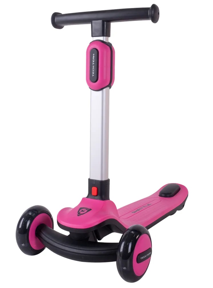 Система складывания самоката выполнена по новой надежной схеме - для раскладывания необходимо нажать кнопку и одновременно потянуть руль вверх как бы вытаскивая его из деки.