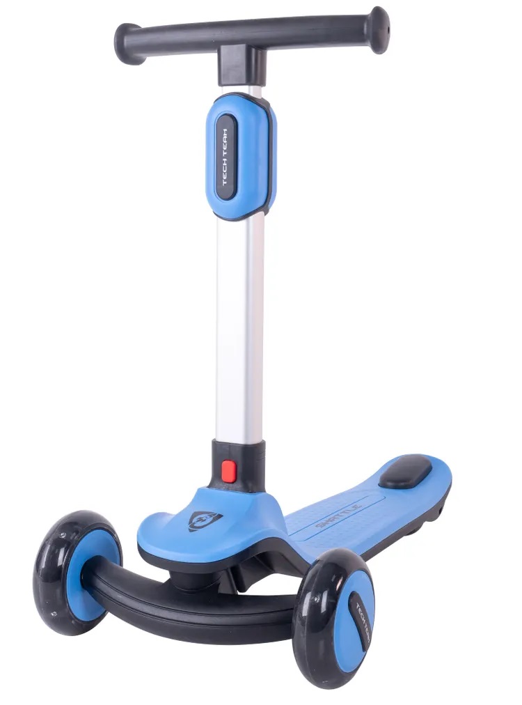 Система складывания самоката выполнена по новой надежной схеме - для раскладывания необходимо нажать кнопку и одновременно потянуть руль вверх как бы вытаскивая его из деки.