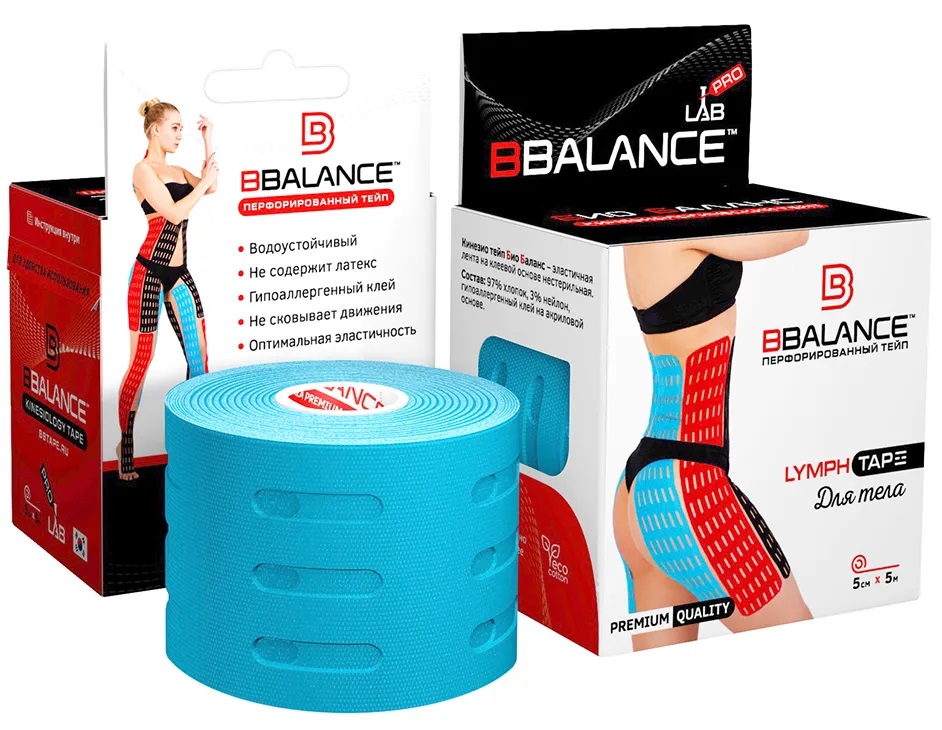 Кинезио тейп с перфорацией особой формы BB LYMPH TAPE™ — инновационная разработка международной лаборатории BBALANCE LAB в Южной Корее. Результаты исследований показали, что применение BB LYMPH TAPE™ дает гораздо более выраженный лимфодренажный эффект по сравнению с обычными кинезиологическими тейпами. Кроме того, перфорированные тейпы не требуют предварительной нарезки в виде «лапши», лучше держатся на коже и исключают вероятность случайного натяжения. За счет наличия специальных прорезей площадь клеевого покрытия перфорированного тейпа примерно на 40% ниже, чем у стандартных тейпов, что позволяет применять данный вид тейпа даже на самых чувствительных областях тела, таких как живот, грудь, бедра, ягодицы и т.д.