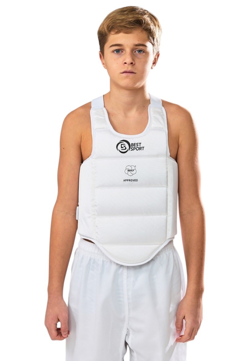 Жилет под кимоно Best Sport, крепление CROSS LIGHT - горизонтальная регулировка размера. Защита корпуса изготовлена из полиэстерного материала с плетением, которое обеспечивает повышенную прочность ткани. Цельное полотно амортизирующей пены (наполнитель) обеспечивает безопасность при ударах в торс и частично поглощает энергию удара. Внутреннее сетчатое покрытие обеспечивает комфортное использование и необходимую вентиляцию. Удобная и комфортная посадки жилета. Легко одевается и регулируется по росту и размеру даже юным спортсменом. Несколько укороченная модель не упирается в пах при работе ногами. Эффективно защищает от прямых, боковых ударов по корпусу, равномерно поглощая силу удару, не препятствует естественной динамики движений.